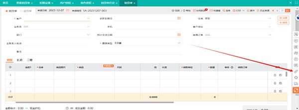 1、新增銷(xiāo)貨單時(shí),點(diǎn)擊右側(cè)的回形針【