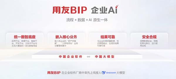 年初,用友BIP企業(yè)AI的發(fā)布,為企業(yè)應用AI提供了落地抓手。面對眾多企業(yè)在系統(tǒng)分散、數(shù)據(jù)孤島中的困境,用友結(jié)合企業(yè)AI的四大特性——統(tǒng)一數(shù)智底座、嵌入核心業(yè)務、結(jié)果可靠、安全合規(guī),提出了一個關(guān)鍵性命題:真正有效果的、可持續(xù)輸出價值的AI,必須扎根于“原生一體化”的土壤之中。