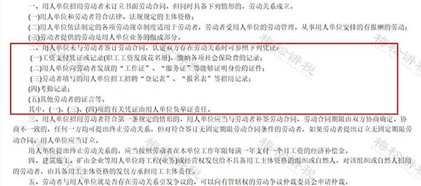 實務(wù)中,有些用人單位會以沒有簽訂勞動合同為由拒絕為職工繳納社保,豈不知,勞動關(guān)系的確定可不僅僅取決于一紙合同,只要有充分的證據(jù)證明個人與單位之間存在勞動關(guān)系,社保就必須得交!具體規(guī)定看下圖: