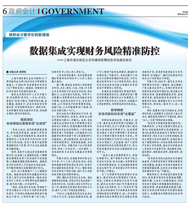 在浦東生態(tài)局副局長黃海華看來,財務核算高度信息化,能夠更好地了解單位預算執(zhí)行情況和會計核算情況,不僅有利于提升財務工作效率,還能提升日常監(jiān)管質效,有效防范財務風險發(fā)生。